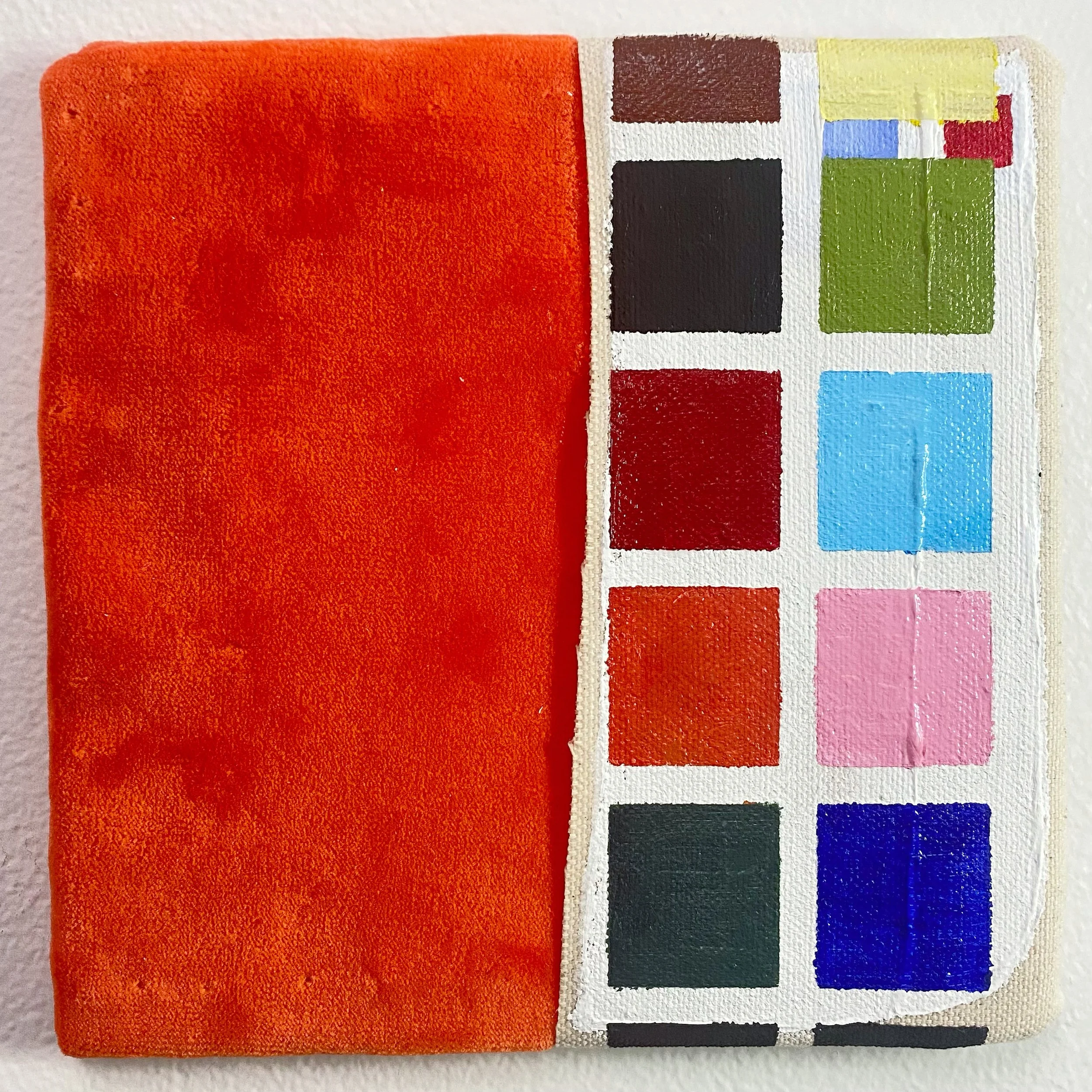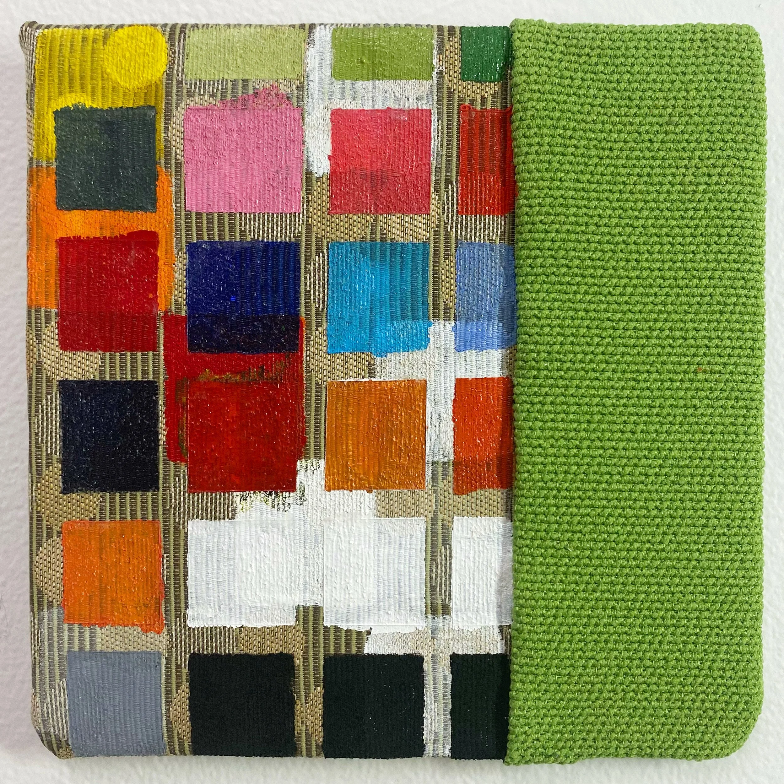 "Untitled" 2022, fabric and acrylic, 6x6" cardboard