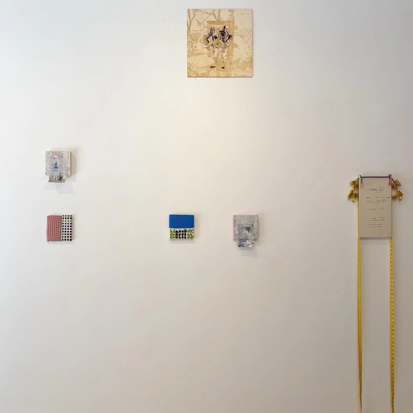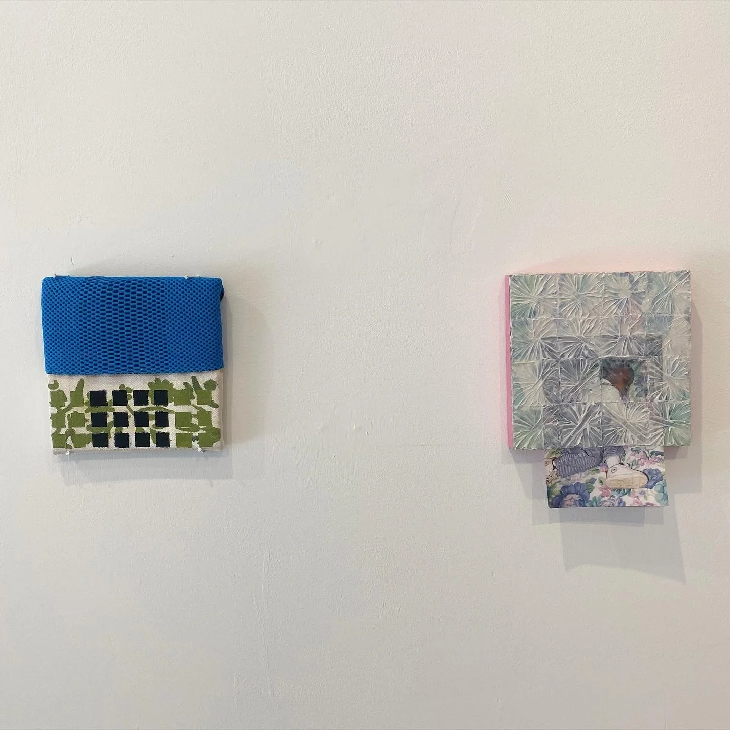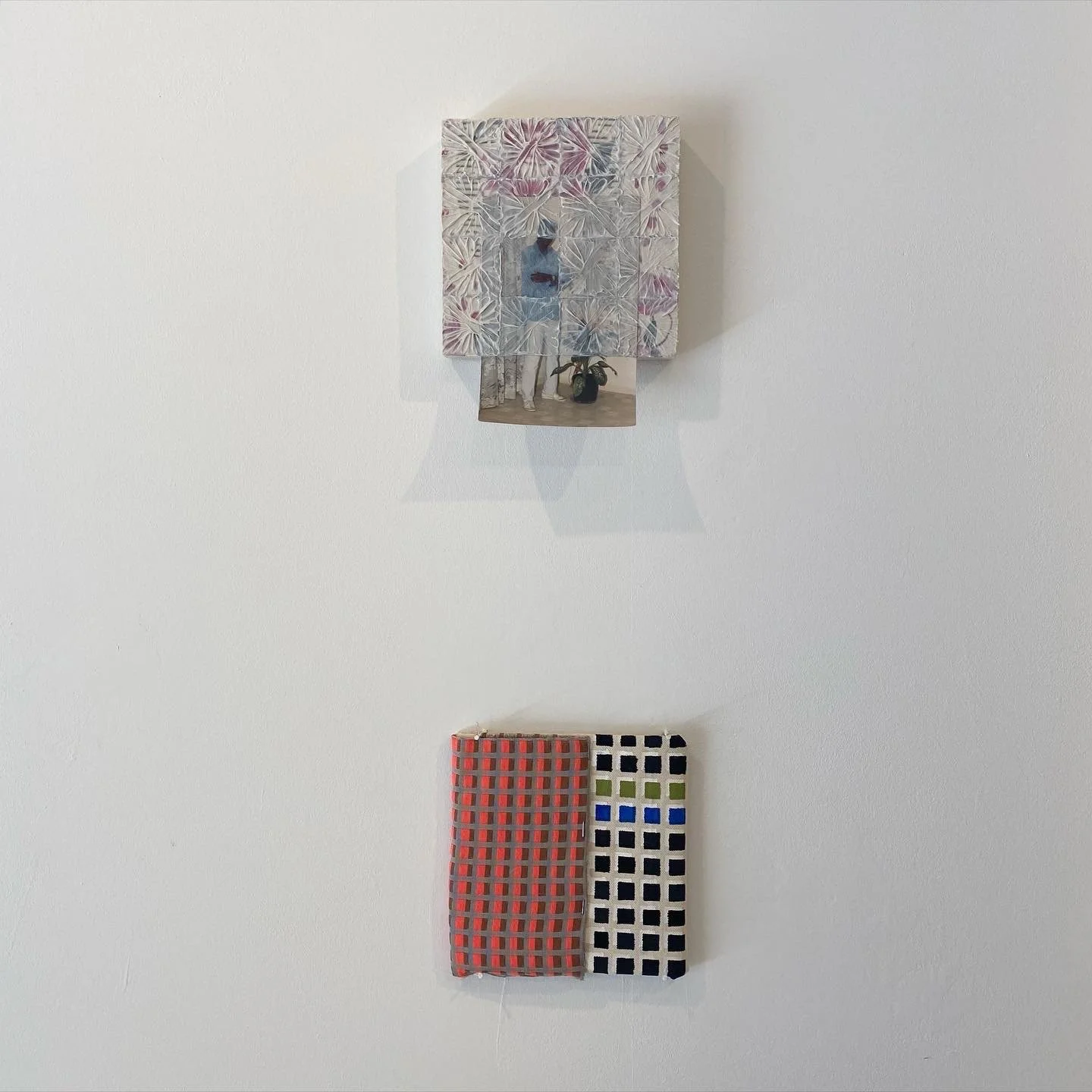 “twinkle” 2023 Molding paste, archival family photographs, textiles, playing cards, flashe paint on repurposed wood. 41.5 x 11.5”