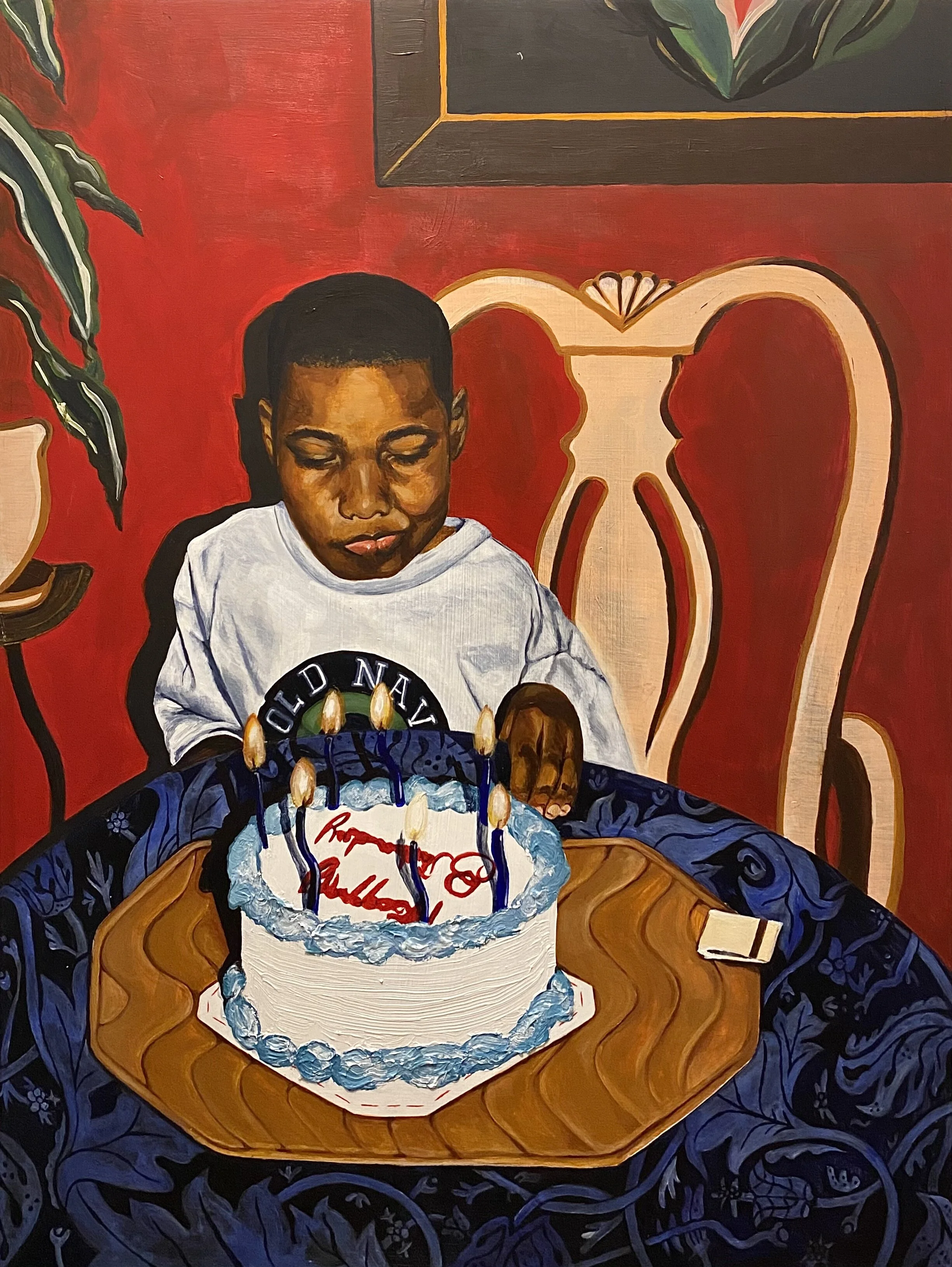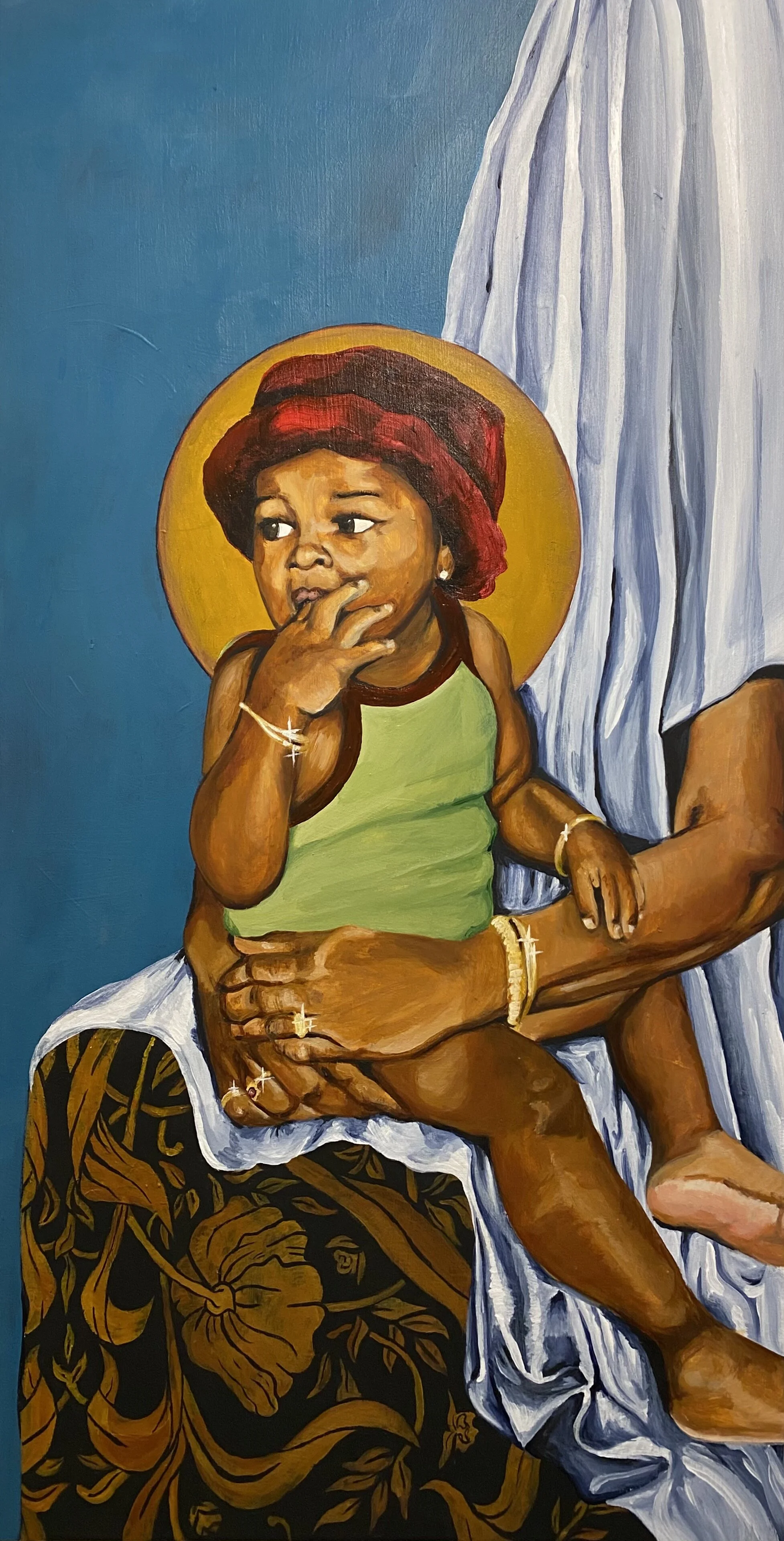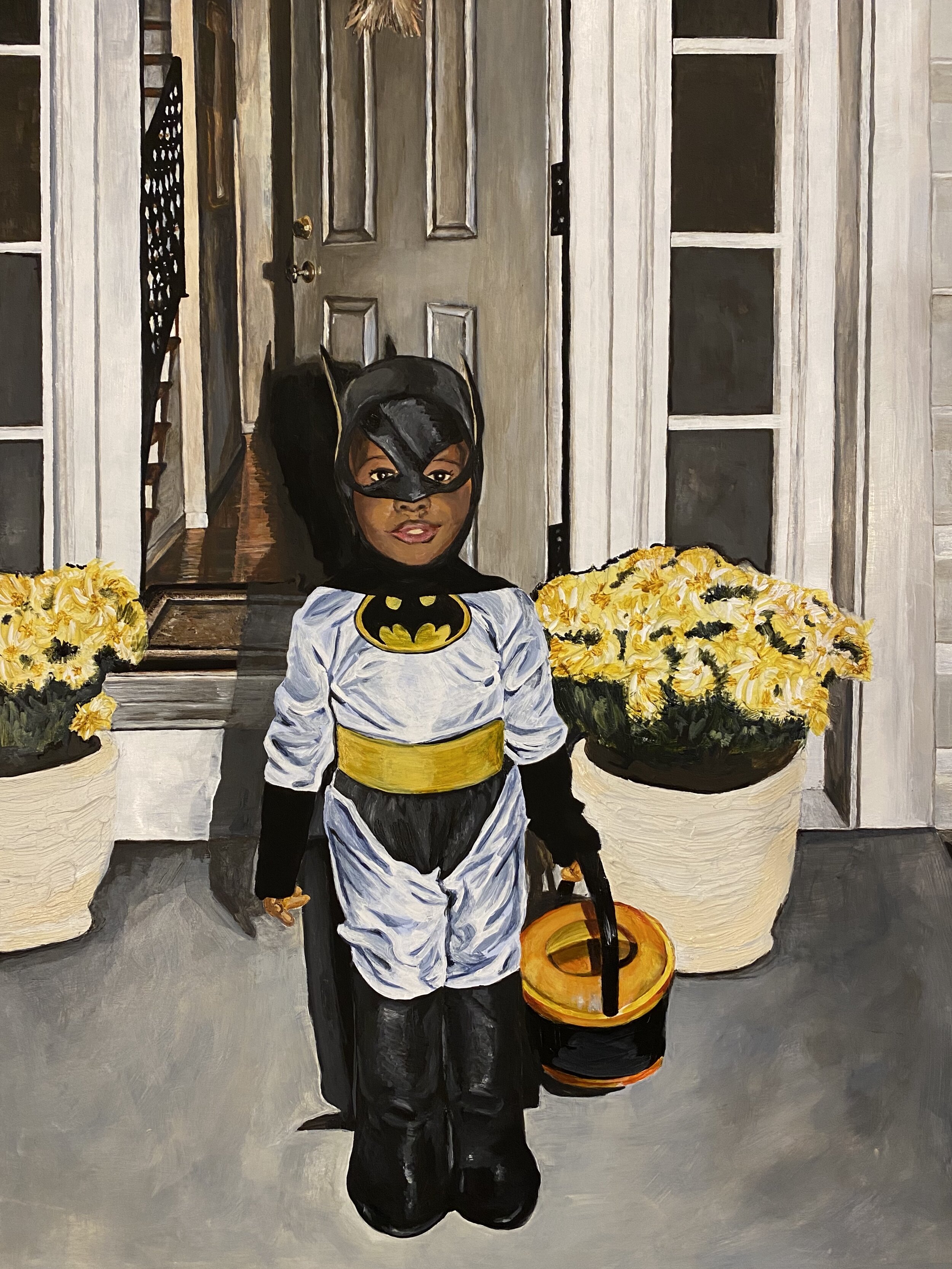 "Young Batman (Portrait of Kamron)" 2020 Acrylic, Flashe and molding paste on Panel 18"x24"